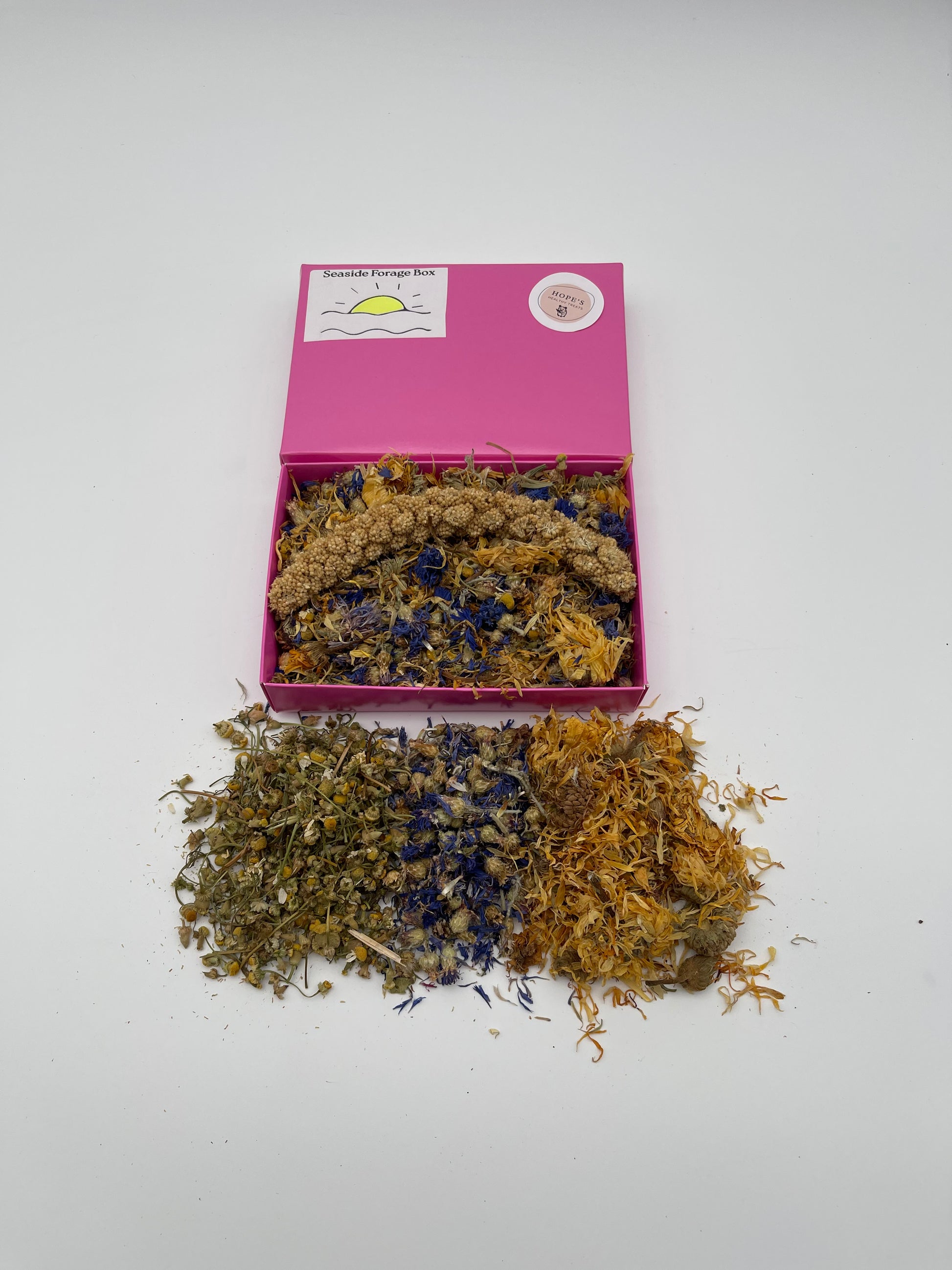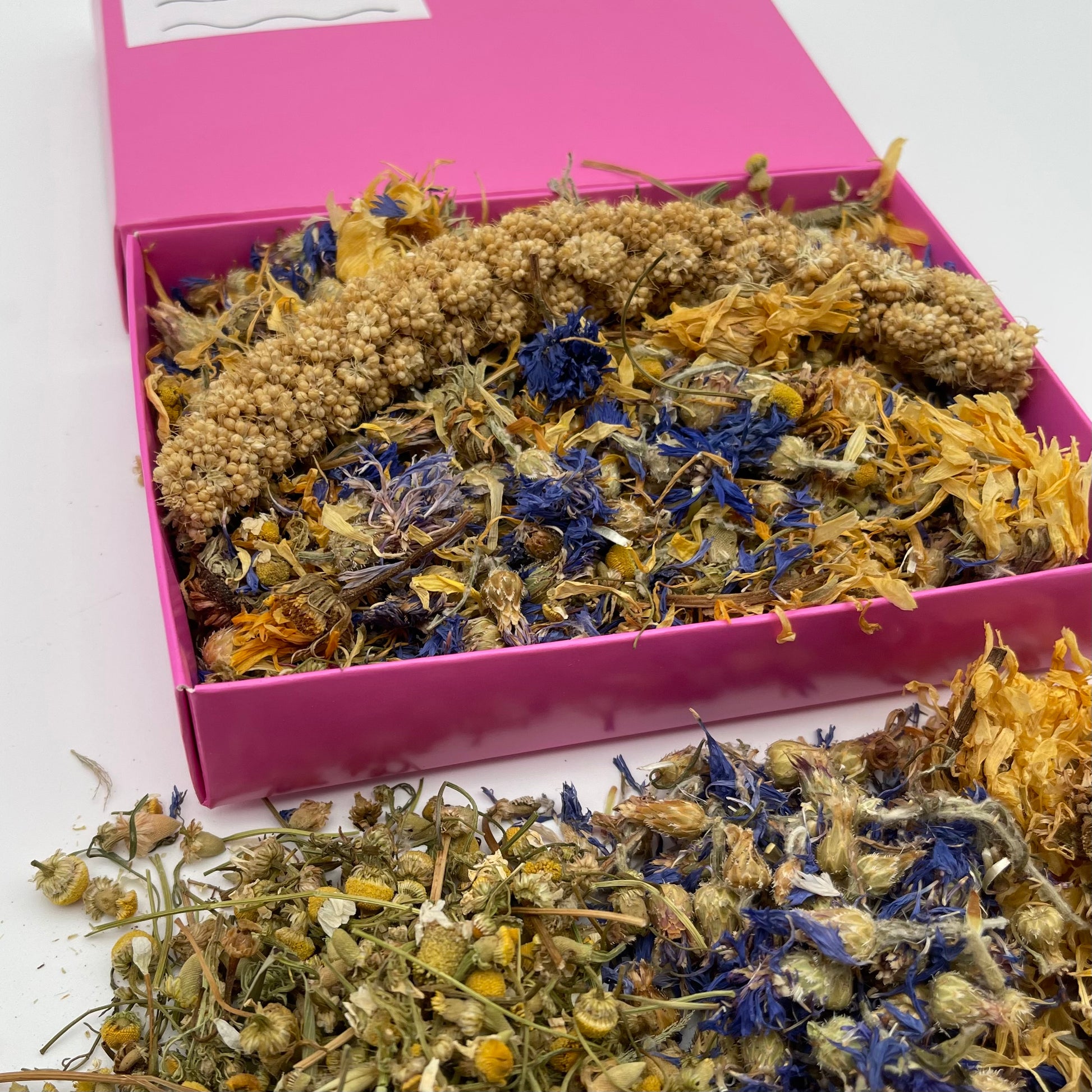 Mayla Tsang This box smells so good. The blue cornflowers helps bring colour into the mix. It comes in a nicely packed box. Highly recommended this, as it makes my hammys enclosure look bright and smelling nice.